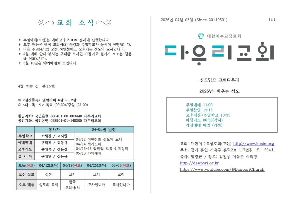 다우리교회, 궁금해요!