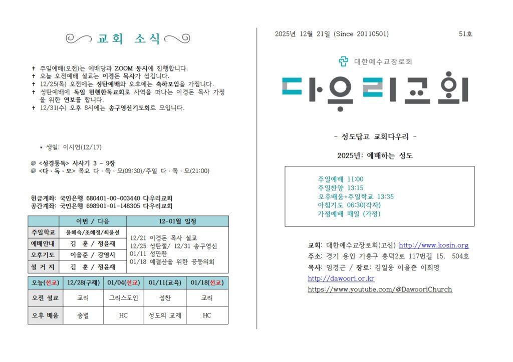 다우리교회, 궁금해요!